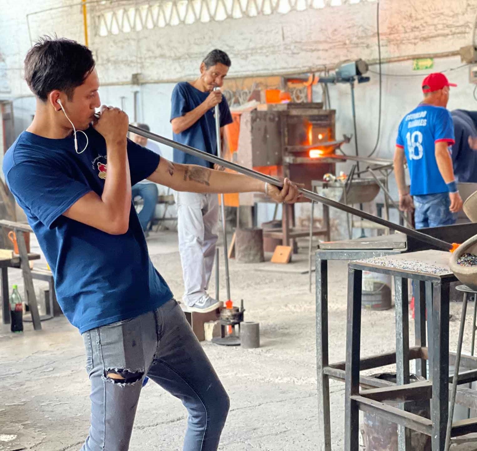 Es un proceso completamente manual, conlleva varios pasos y diversas manos para crear una sola pieza. Esta técnica se llama así porque los artesanos soplan aire a través de una caña para hacer una burbuja, que da vida a las piezas.