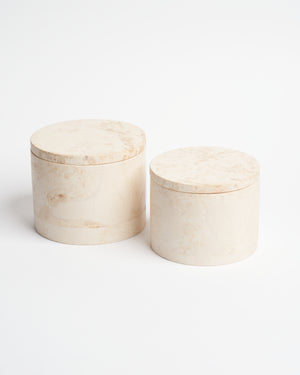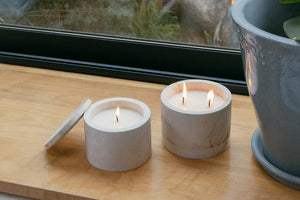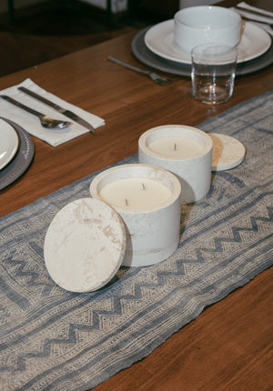 Estas velas están hecha a base de cera de soya yaceites esenciales naturales. Los recipientes fueron elaborados a mano por talentosos artesanos de Yucatán. La materia prima es crema maya, una piedra natural extraída de canteras locales, única por su tonalidad blanca.
